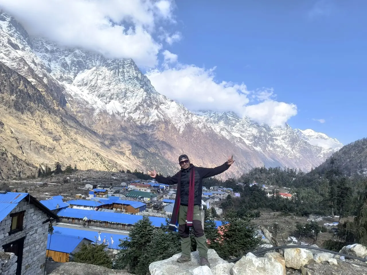 Begin early to cross Larkya La Pass, the highest point of the trek at 5160 meters. The ascent is challenging, but the panoramic views from the top are rewarding. Descend to Bimthang, a village known for its traditional architecture and stunning views of the surrounding peaks.